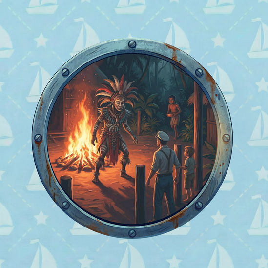 The crew of the Porpoise arrives in Brazil and hires a superstitious new cook, Andrefo Molock, who claims to be haunted by the ghost of Sailor Sam’s old nemesis, “Hook.” As mysterious events escalate, Sam and Oli recount the true story of the real Hook’s heroic death years ago to prove the ghost is a fake. The mystery culminates in a clever trap where Oli disguises himself as the dead man to confront the imposter, leading to a revelation about Hook’s family and a moment of spiritual redemption.