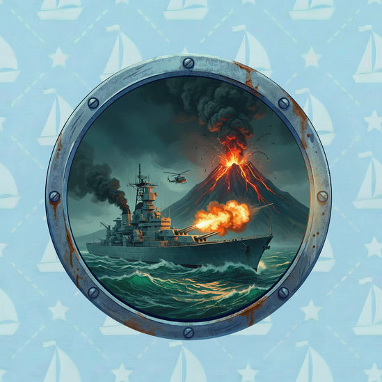 Sailor Sam and his crew travel to Malden Island to stop the “exterminator” volcano, Apollyon, from repeating a historic disaster; after surviving a tidal wave and rescuing trapped crew members, Sam uses naval artillery from a cruiser to cave in the crater and divert the lava flow away from the city.