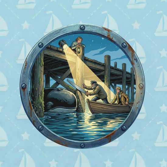 Sailor Sam and his crew team up with the legendary “Harpoon Johnny” to capture a massive, unusually aggressive killer whale for a museum collection. After the whale smashes local fishing boats and severely damages the Porpoise, Sam develops a high-stakes strategy using short-wave detonated TNT mines to stop the “marauder of the deep” and restore the livelihood of a coastal community.