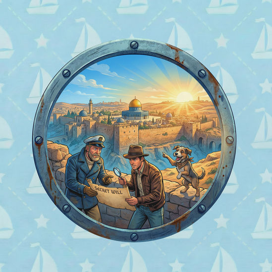 Sailor Sam and his crew travel to Israel to support an old friend, archeologist Ben Lowes, who is being targeted by a mysterious criminal named Omar Harif. After enduring theft, hotel ransacking, and a life-threatening car sabotage, the crew discovers that Omar is attempting to suppress a second will left by Ben’s late father. Through Buddy’s keen intuition, they locate the true will hidden with Omar’s own mother, securing Ben’s inheritance and bringing the truth to light in the Holy Land.